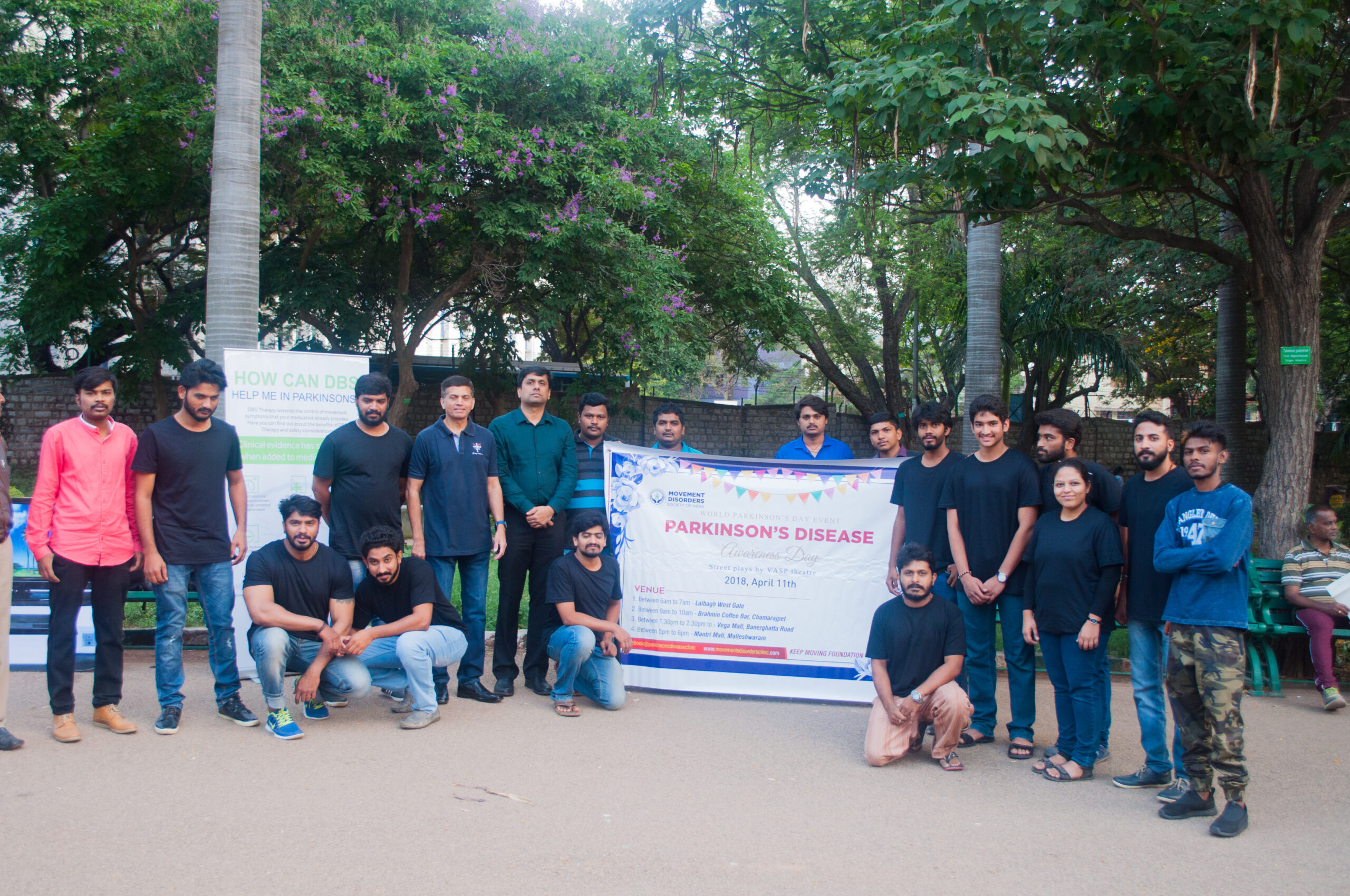 PD Awareness program, conducted across Bangalore, including Lalbagh Botanical Gardens, Brahmin Coffee Bar, Vega Mall, Mantri Square mall. VASP theatre conducted the events